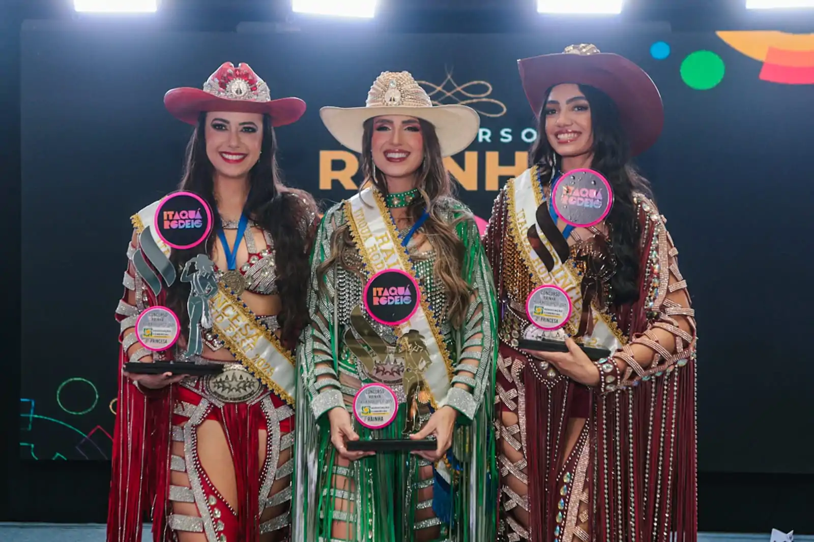 O Itaquá Rodeio Fest elegeu sua nova corte para a edição de 2025. Natália Moreira Dutra de Andrade, 30, moradora do bairro Vila Ferreira, foi coroada Rainha, enquanto Fernanda de Souza Martins, 34, do Centro, foi eleita 1ª Princesa. Já Thamires Vitória Santana Rosa, 24, do Jardim Caiuby, conquistou o título de 2ª Princesa.