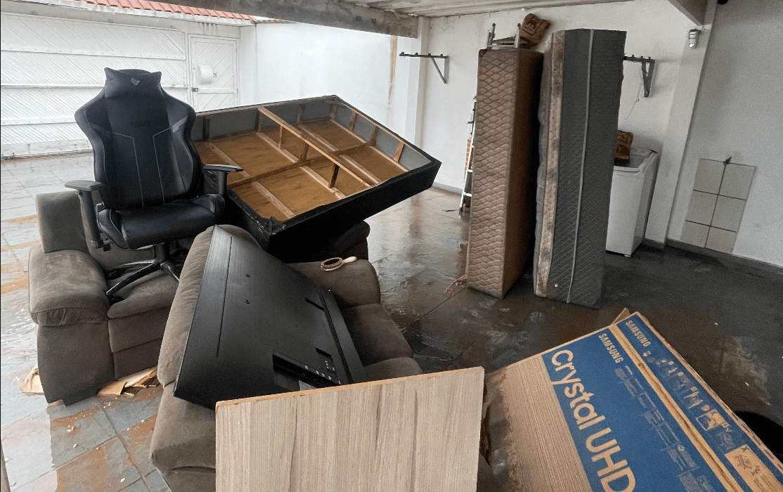 Na casa de Borges, moram outras sete pessoas, incluindo crianças e a avó. A quantidade de água que invadiu a casa foi suficiente para estragar grande parte da mobília da família. “Perdemos três máquina de lavar, duas geladeiras, mesa, sofá, cama, colchão, meu computador. Entrou água nos dois carros da minha família. Não tive nem tempo de somar o prejuízo. É uma situação de impotência, não desejo isso para ninguém”, comenta.