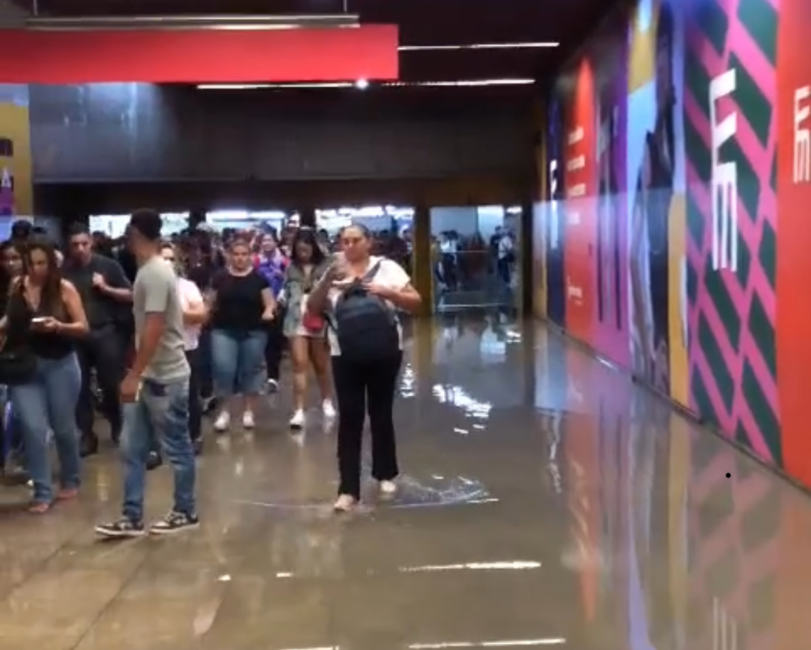 Em contato com a equipe do jornal O Diário, uma passageira registrou o momento em que se deparou com uma enorme poça d’água em um dos corredores da estação. No vídeo, podemos ver a dificuldade dos passageiros que tentavam passar pelo local e que tiveram o espaço de passagem reduzido devido ao fluxo de pessoas.