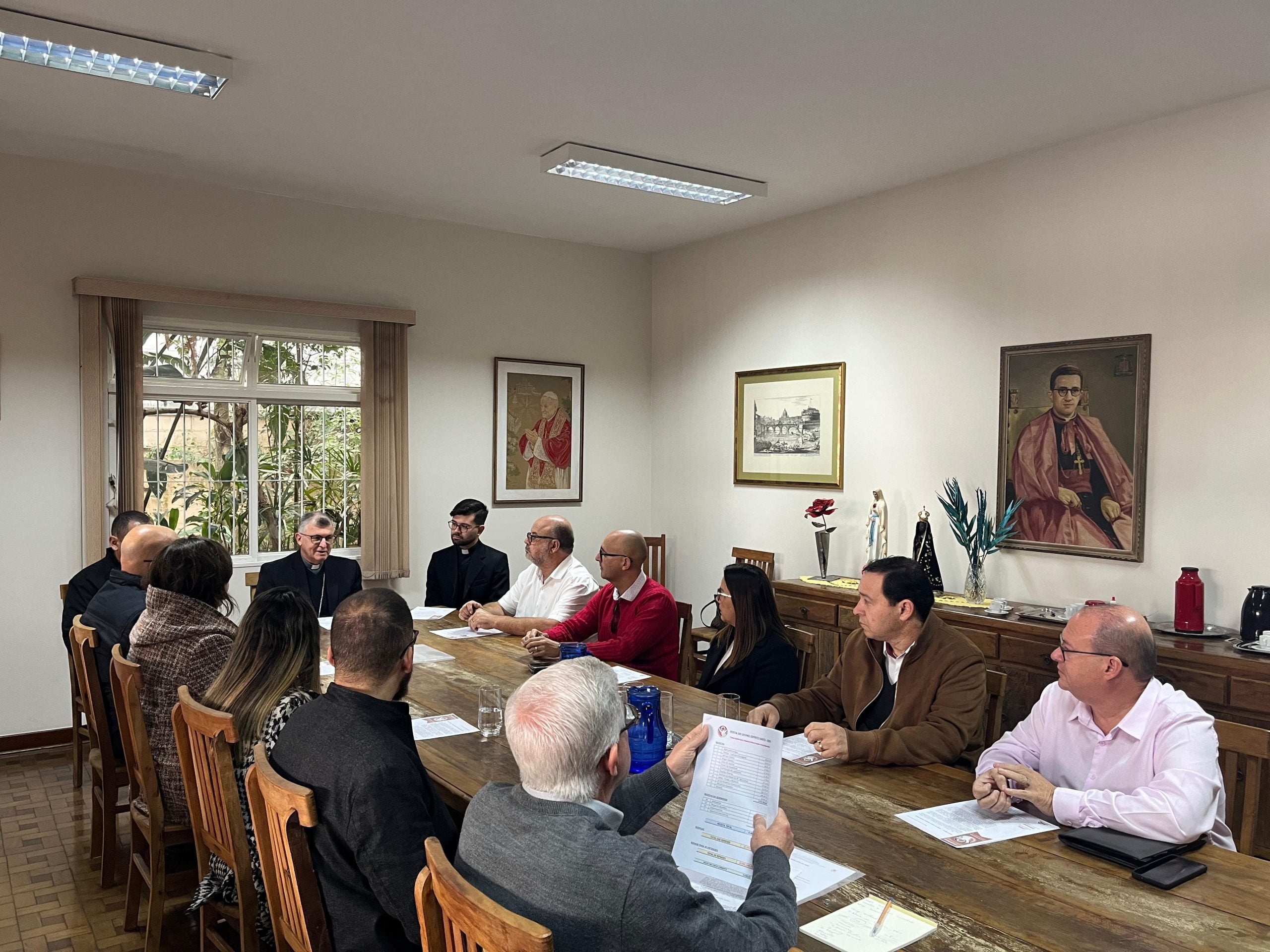 O bispo diocesano, Dom Pedro Luiz Stringhini, conduziu a reunião, em que também estiveram presentes os Festeiros e Capitães de Mastro, respectivamente, Eduardo Ferreira Rego e Milena da Costa Freire Rego e Wagner Baptista Santos e Ludmyla de Oliveira Baptista Santos; o presidente da Associação Pró-Festa do Divino, Marcelo Braz; o primeiro tesoureiro da Associação Pró-Festa do Divino, José Carlos Nunes Júnior; o administrador da Mitra Diocesana, Antônio José Mercado Martins; e os padres Diego Araújo Costa, secretário do bispado; e Luiz Renato de Paula, ecônomo da Diocese. Também participaram o Festeiro de 2025, João Pedro Mota, e o casal de Capitães de Mastro Lizandro Leonardo da Silva Corrêa e Patrícia Aparecida do Espírito Santo Corrêa.