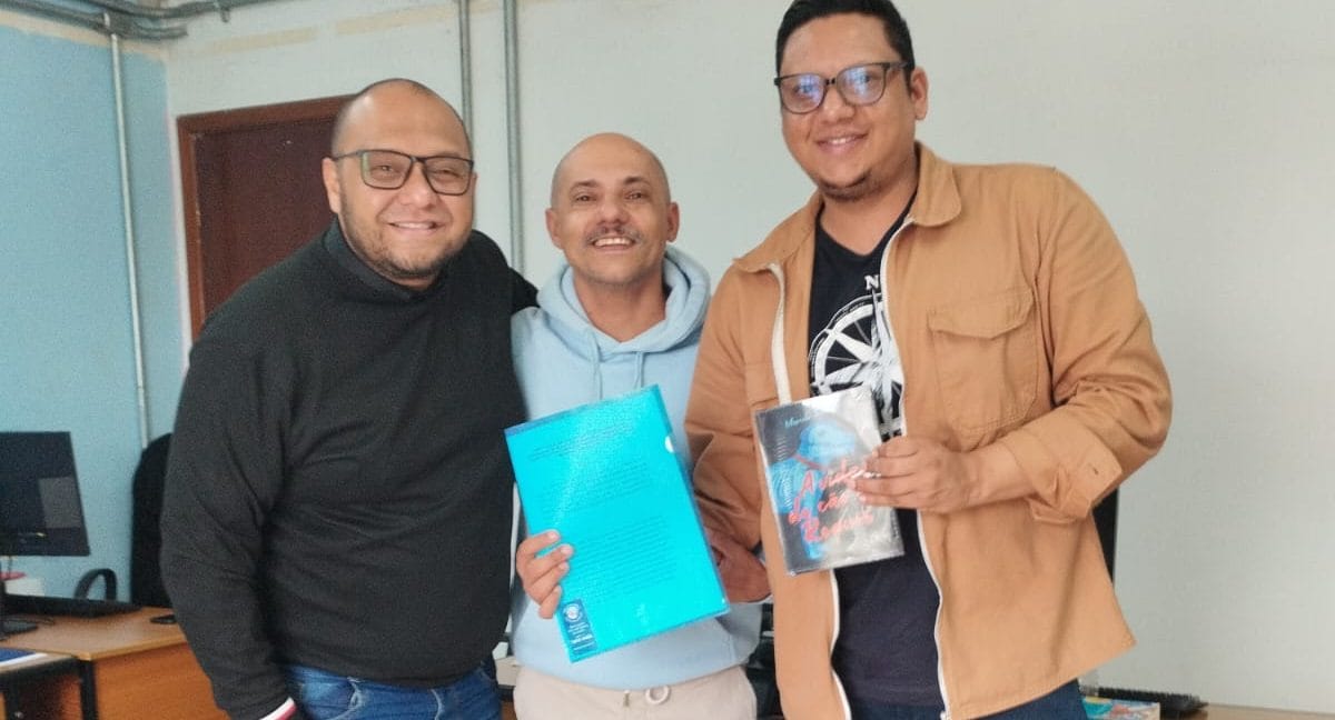 Escritor Marcelo Barbosa, com o Professor e Poeta Seu Zé, e Marcelo Cavalcante, professor especialista em Currículo. Ambos da Diretoria de Ensino de Suzano | Divulgação