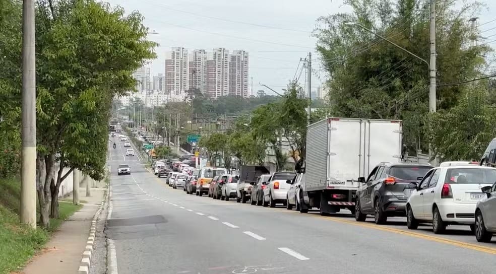 Trânsito ocorreu na Avenida João XXIII, uma das principais saídas do distrito para o Centro, na manhã de hoje; motociclista precisou ser socorrido