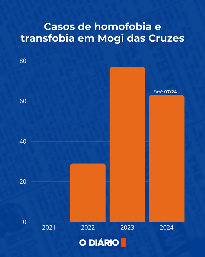 Segundo os dados divulgados pelo Fórum Mogiano LGBT+, salto no número de denúncias aconteceu em 2023, quando foram registradas 77 ocorrências; em 2024, até julho, 63 casos foram denunciados à Delegacia da Diversidade