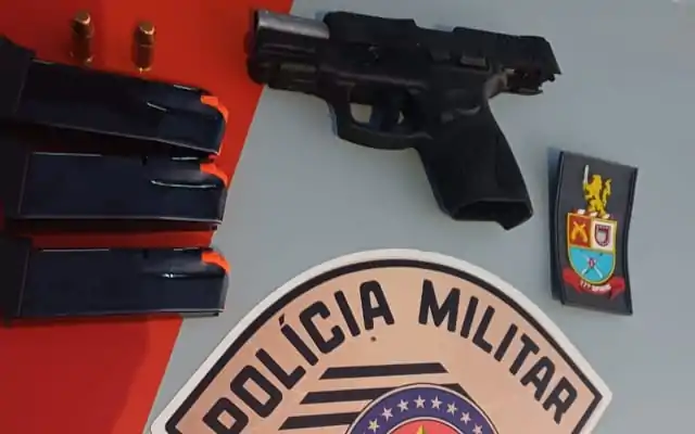 Durante a busca no local, os policiais encontraram uma bolsa com três carregadores e duas munições intactas na garagem da residência. A arma, uma pistola de uso restrito, foi localizada dentro de um freezer.