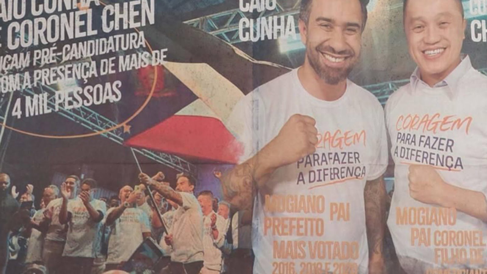 O União Brasil acusou o Podemos de praticar propaganda eleitoral antecipada para a reeleição do prefeito Caio Cunha, de Mogi das Cruzes. O Tribunal Regional Eleitoral de São Paulo (TRE-SP) acatou parcialmente a denúncia e determinou que fosse realizada busca e apreensão de impressos com suposta propaganda irregular na sede do partido, além da suspensão de sua circulação.