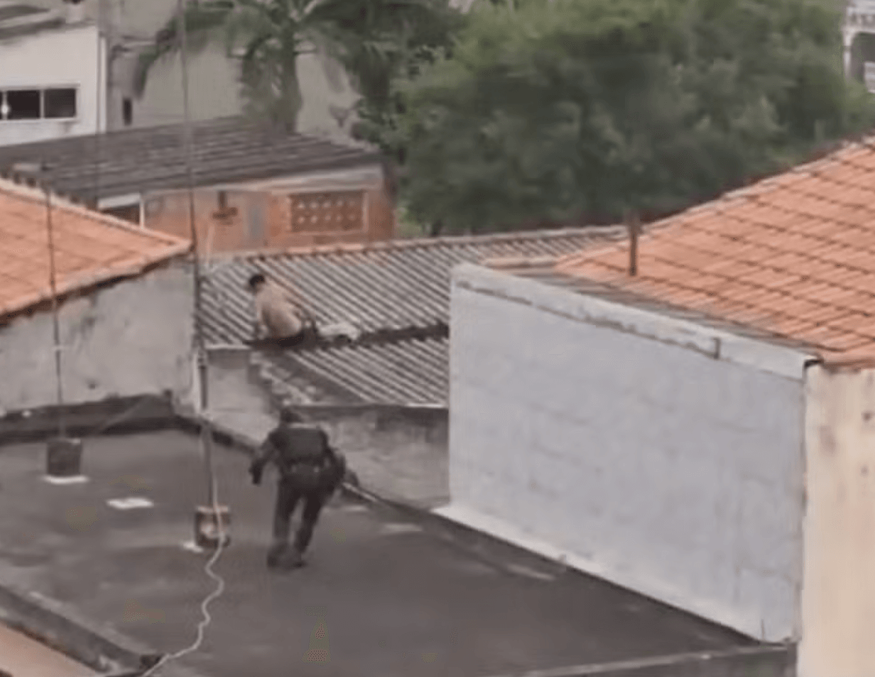 Agente da GCM de Suzano persegue suspeito em telhados de imóveis | Reprodução/Redes Sociais